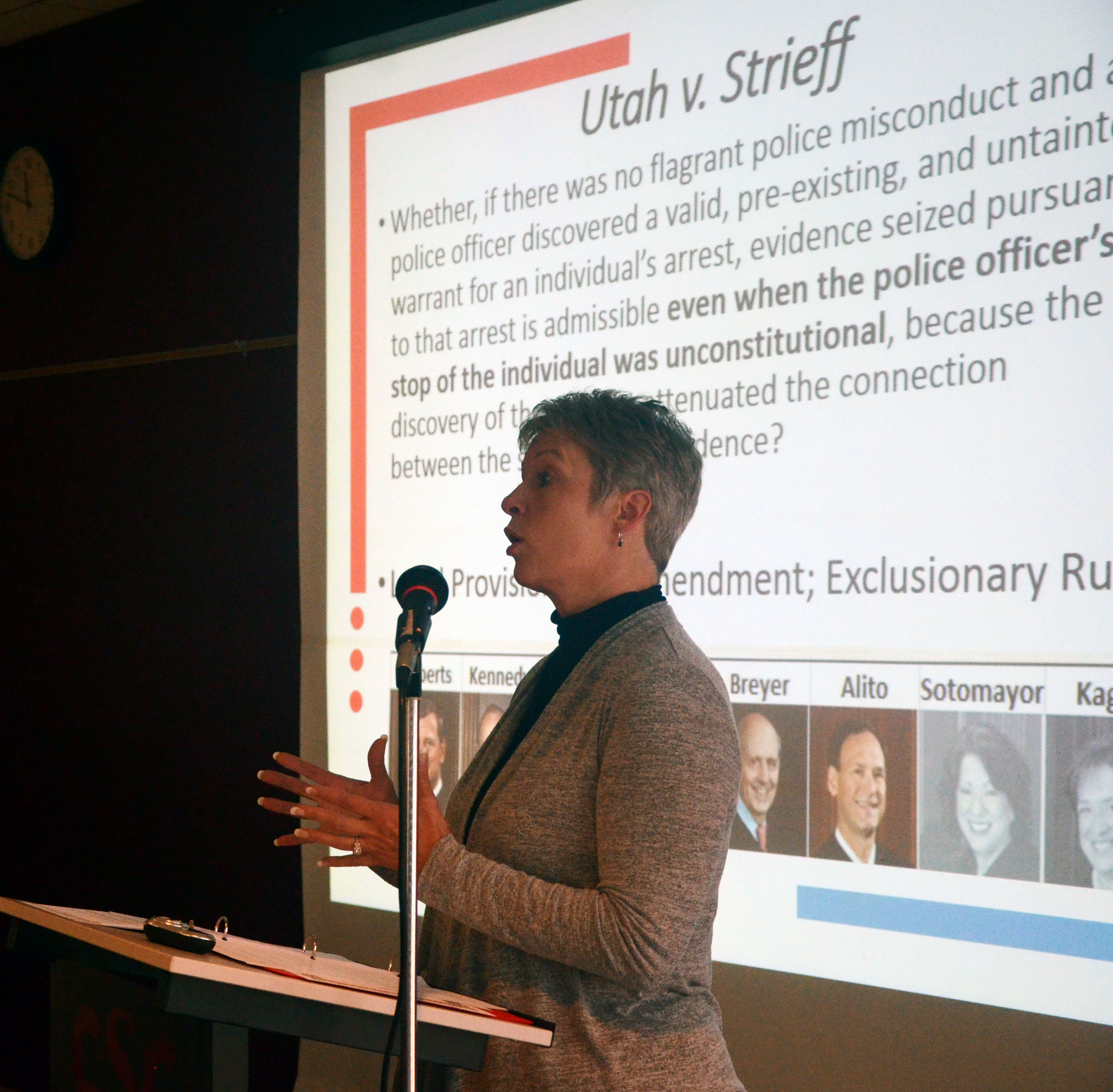 The seminar was opened up by Bogner and James Wada, associate professor and department chair of justice studies, who briefly went into discussion about the untimely death of Justice Antonin Scalia, and the impact that death had on the decisions that were made following it.