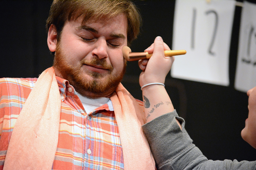 Each play is briefly introduced before it goes into action, and since there is so much moving of props and actors, assistant stage manager Taylor Thies, freshman of Rapid City, South Dakota, makes sure the actors and stage manager Jessica Steffen-Schepers, senior of Chadron, are ready before the beginning of each skit.